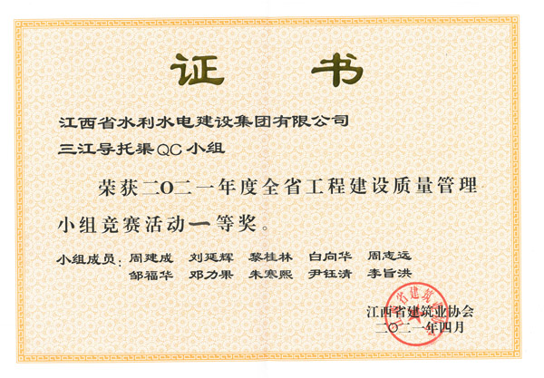 集團(tuán)資訊近日,2021年度江西省工程建設(shè)質(zhì)量管理小組競賽活動公布名次,由公司三江導(dǎo)托渠QC小組開展的QC活動榮獲小組競賽活動一等獎(jiǎng)。該獎(jiǎng)項(xiàng)的獲得,為公司工程創(chuàng)優(yōu)奠定了堅(jiān)實(shí)的基礎(chǔ),為公司爭得了榮譽(yù),今后,江水建設(shè)將繼續(xù)深入開展QC活動,秉承工匠精神推動質(zhì)量提升,打造更多精品工程,為樹立集團(tuán)公司品牌形象繼續(xù)努力。