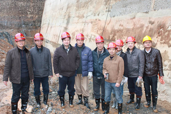 董事長(zhǎng)、總經(jīng)理王元旦一行首先來到基坑澆筑、混凝土攪拌站等施工現(xiàn)場(chǎng)進(jìn)行察看,與施工人員一一握手,并聽取了春節(jié)期間帶領(lǐng)員工奮戰(zhàn)在施工一線的公司副總經(jīng)理聶玉和的生產(chǎn)情況匯報(bào)。董事長(zhǎng)、總經(jīng)理王元旦詳細(xì)詢問了攪拌站的生產(chǎn)能力能否滿足施工要求,工程的進(jìn)展情況及后期施工中的各項(xiàng)措施,對(duì)項(xiàng)目部全體員工放棄節(jié)假日搶工期、保質(zhì)量、抓進(jìn)度的奉獻(xiàn)精神給充分肯定和高度評(píng)價(jià),他勉勵(lì)大家保證質(zhì)量安全的前提下,抓緊時(shí)間完成大壩防滲面板的施工、再苦再累也要咬緊牙關(guān)挺過去,并要求施工項(xiàng)目部合理安排好大家春節(jié)期間的工作和生活。