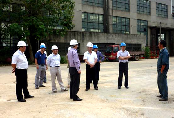 董事長、總經(jīng)理王元旦一行在機(jī)械安裝公司門機(jī)拆解現(xiàn)場