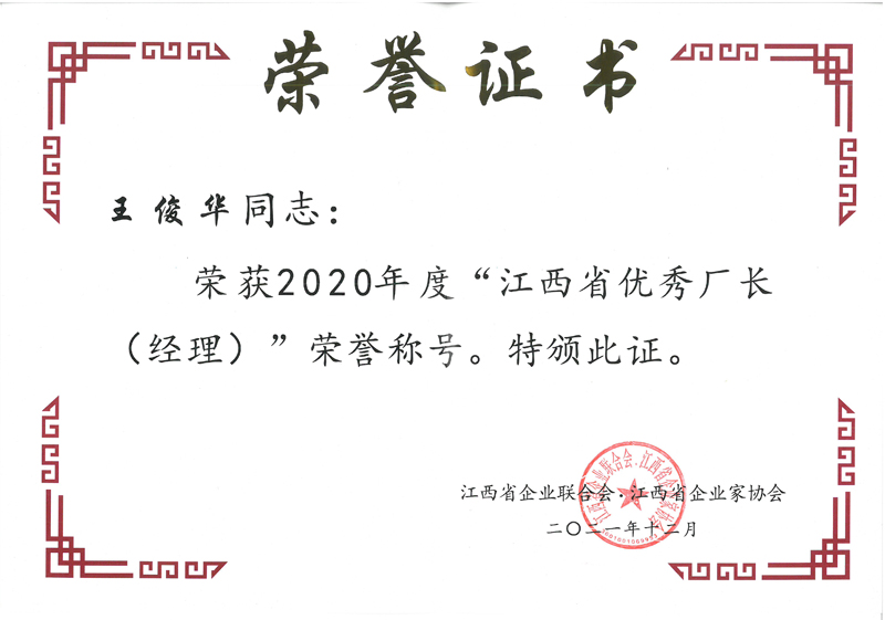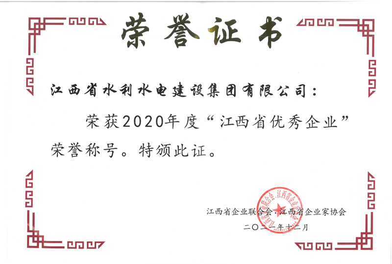 集團(tuán)資訊近日,江西省企業(yè)聯(lián)合會、江西省企業(yè)家協(xié)文件《關(guān)于表彰“2020年度新時代江西杰出企業(yè)家、江西省優(yōu)秀企業(yè)、江西省優(yōu)秀企業(yè)家、江西省優(yōu)秀廠長(經(jīng)理)”的決定》公布了2020年度江西省優(yōu)秀企業(yè)等獎項的評選結(jié)果。集團(tuán)獲評江西省優(yōu)秀企業(yè);集團(tuán)董事長王元旦獲評新時代江西杰出企業(yè)家;集團(tuán)常務(wù)副總裁王俊華獲評江西省優(yōu)秀廠長(經(jīng)理)。至此,集團(tuán)已連續(xù)二十二年被評為“江西省優(yōu)秀企業(yè)”。榮譽是一種肯定,更是一種責(zé)任,集團(tuán)將以此為動力,新的一年再接再厲,繼續(xù)以優(yōu)秀水利龍頭企業(yè)的標(biāo)準(zhǔn)嚴(yán)格要求自己,不斷超越自我,開創(chuàng)企業(yè)發(fā)展多元化新格局,持續(xù)提高市場競爭力和社會影響力。