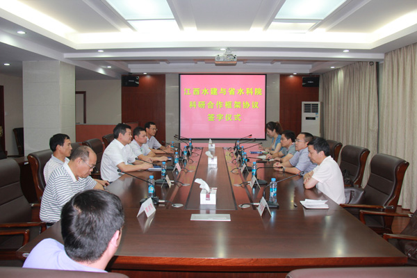 2013年9月3日,江西省水利水電建設(shè)有限公司與江西水利科學(xué)研究院簽訂了科研合作框架協(xié)議。公司董事長兼總經(jīng)理王元旦、省水科院院長方少文代表雙方單位在科研合作框架協(xié)議書上簽字。公司總經(jīng)濟(jì)師孫八根、紀(jì)委書記王延軍、副總經(jīng)理徐洪良,省水科院黨委副書記李洪任等出席簽字儀式。