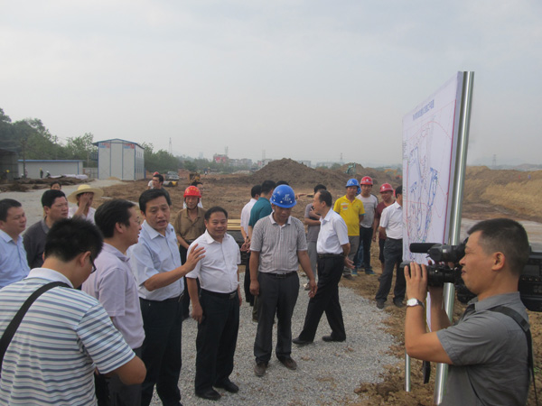 萍鄉(xiāng)市市長李小豹一行在施工現(xiàn)場聽取情況匯報(bào)