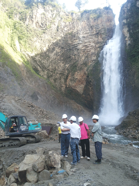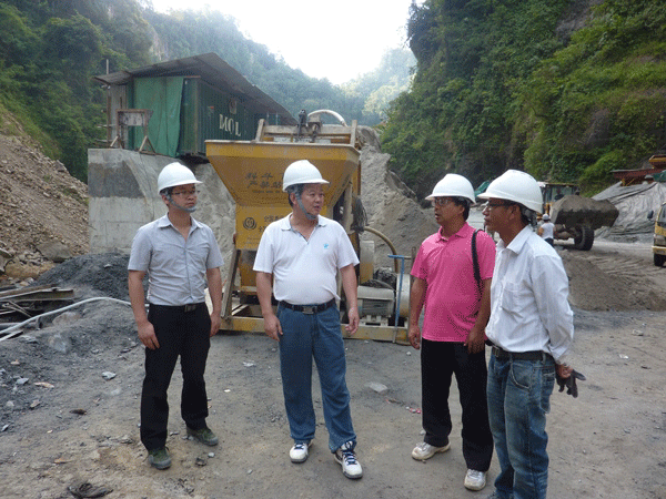 9月20日上午8時,王總一行抵達印尼棉蘭國際機場,隨即轉機前往PAKKAT水電站項目所在地。在項目經(jīng)理孫小軍等的陪同下,王總不辭辛苦深入到大壩施工區(qū),認真察看了大壩、發(fā)電隧洞等施工現(xiàn)場,他與現(xiàn)場施工人員一一握手并表示節(jié)日的慰問。王總察看施工現(xiàn)場并聽取匯報后,對大壩的建設情況以及工程外觀形象控制表示滿意,并結合自己的經(jīng)驗對豎井的施工提出了建設性建議,重點強調了豎井施工安全生產的重要性。