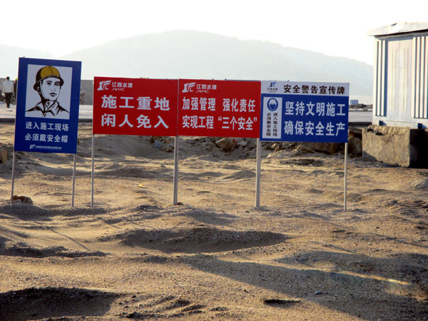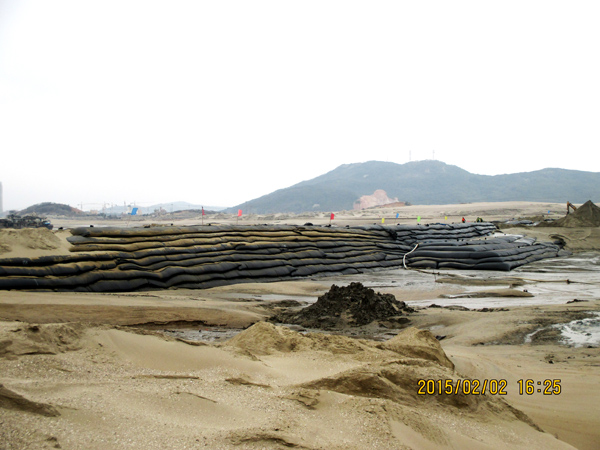 平潭綜合實(shí)驗(yàn)區(qū),主島為海壇島,位于福建省東部,與臺(tái)灣隔海相望,是中國(guó)大陸距離臺(tái)灣島最近的地方,是中國(guó)第五大島,有福建的“馬爾代夫”之稱。平潭綜合實(shí)驗(yàn)區(qū)如意湖防潮閘工程項(xiàng)目總投資1.3億元,我公司承建的土建工程包括排澇閘、防潮閘、公路橋、上下游兩岸翼墻、防沖消能、控制房等土建工程施工(含導(dǎo)流明渠開(kāi)挖、圍堰填筑)。平潭(簡(jiǎn)稱嵐)年平均風(fēng)速超過(guò)五級(jí)以上,大風(fēng)呼嘯,沒(méi)來(lái)這里感受不到風(fēng)有多大!依據(jù)工程設(shè)計(jì)及進(jìn)度要求,在落差8m潮汐中的軟基上進(jìn)行圍堰模袋充砂以截流海水,在惡劣地質(zhì)條件的海中建閘,與潮水賽跑、跟臺(tái)風(fēng)搶工期,潮起潮落,給工程建設(shè)平添了許多艱難與艱辛。