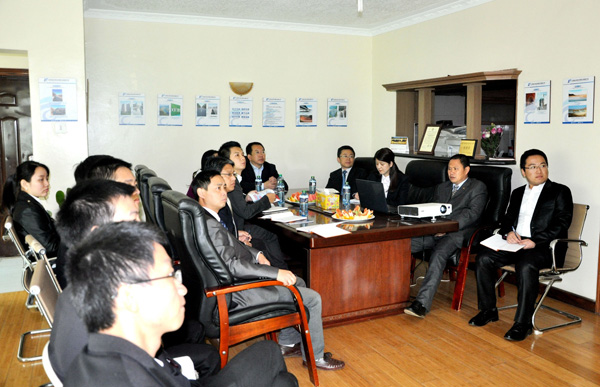 當?shù)貢r間2015年7月16日,中國駐肯尼亞經(jīng)濟商務處參贊郭策一行到我司肯尼亞分公司調(diào)研??夏醽喎止究偨?jīng)理賀翔、副總經(jīng)理彭紅軍及相關(guān)人員迎接并陪同調(diào)研。