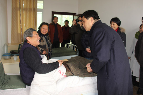 隨后,孫廳長一行又來到生活基地職工醫(yī)院慰問。在病房內(nèi),孫廳長看望了躺在病床上的兩位退休老職工,詳細詢問了老人的病情,希望他們安心治療、早日康復(fù),并送上慰問金。在聽取職工醫(yī)院負責(zé)人對醫(yī)院工作情況的匯報后,孫廳長指出,公司有義務(wù)也有責(zé)任讓離退休職工老有所養(yǎng)、病有所醫(yī),職工醫(yī)院要更新理念,加快改革步伐,壯大醫(yī)療技術(shù)隊伍,更好地解決離退休職工醫(yī)療保健問題。