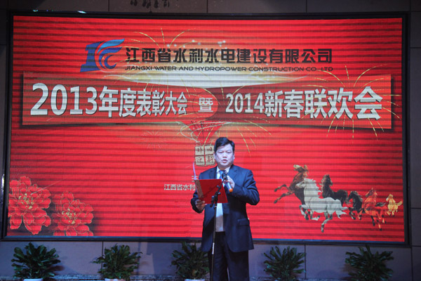在隨后的新春聯(lián)歡會上,王總發(fā)表了熱情洋溢的新年賀詞,并代表公司董事會和領(lǐng)導(dǎo)班子,向全體員工、支持公司改革發(fā)展的離退休老同志和員工家屬,以及仍堅守在工作崗位的海內(nèi)外一線員工致以節(jié)日的祝福和誠摯的問候。王總在致詞中說,2013年是公司發(fā)展史上不平凡的一年,在公司董事會的正確領(lǐng)導(dǎo)下,全體員工以企業(yè)為家,團結(jié)一心、不畏艱難,腳踏實地、開拓創(chuàng)新,沿著年初制定的各項工作目標(biāo)努力奮進。公司各項事業(yè)繼續(xù)保持蓬勃發(fā)展的良好形勢,朝著質(zhì)量好、品牌優(yōu)、市場廣的集團型企業(yè)方向邁進。2013年,公司開拓進取、勇于突破,準確定位、大膽決策,利用資本運作境內(nèi)外項目,以投融資帶動市場,在國內(nèi)嘗試承接BT項目,國外則跨行業(yè)進入投資領(lǐng)域,利用投資經(jīng)營提升企業(yè)競爭力。王總指出,公司在2013年取得了一系列優(yōu)秀的成績,兩項省級工法和兩項部級工法通過評審,內(nèi)部管理制度日益健全,爆破資質(zhì)、城市園林綠化資質(zhì)通過審核,在國際工程建設(shè)領(lǐng)域發(fā)展迅速,被譽為江西水利行業(yè)走向世界、開拓國際市場的排頭兵。