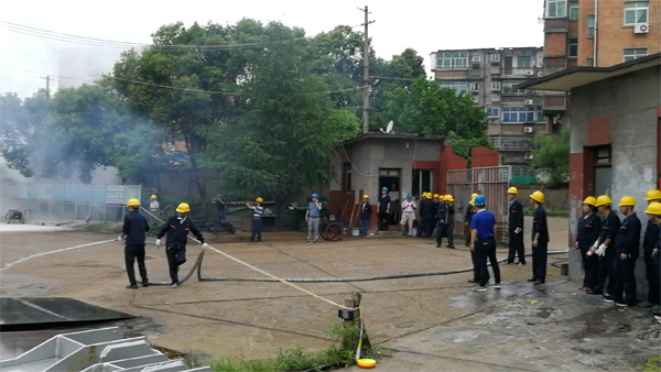 此次演練活動,得到了公司各級領(lǐng)導的高度重視,相關(guān)領(lǐng)導親臨現(xiàn)場進行了指導,機安公司廠區(qū)內(nèi)全體員工參加演練。此次演練內(nèi)容:1、火情報警;2、人員疏散;3、搶救物資;4、滅火器使用方法;5、連接室外消防給水滅火等。