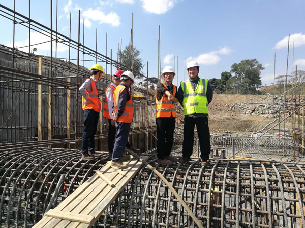 在項(xiàng)目現(xiàn)場,王元旦董事長重點(diǎn)察看了大壩進(jìn)水口工作面包括大壩基礎(chǔ)混凝土的澆筑、取水隧洞的施工情況,聽取了項(xiàng)目進(jìn)展情況匯報。王元旦董事長對項(xiàng)目安全生產(chǎn)、質(zhì)量及進(jìn)度情況表示滿意,他鼓勵項(xiàng)目部同志再接再厲,注重安全生產(chǎn),嚴(yán)把質(zhì)量關(guān),按期完成施工任務(wù),努力把該項(xiàng)目打造成江西水建精品工程,提升公司在盧旺達(dá)國家、世界銀行組織的知名度。