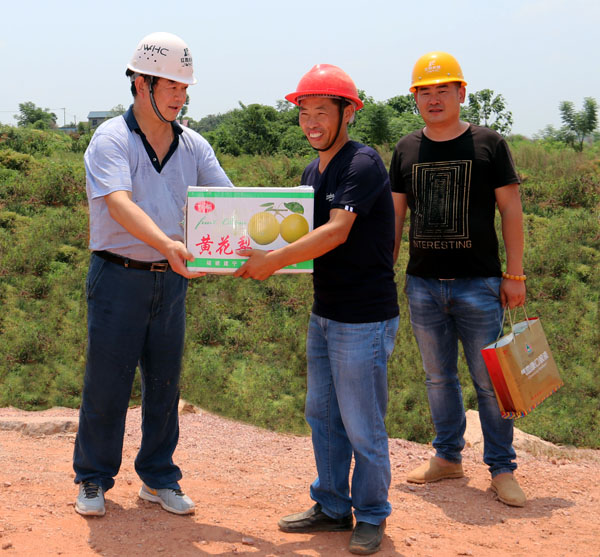 頂著炎炎烈日,王元旦董事長(zhǎng)一行先后來到盧前隧洞、北樓隧洞、曾家渡槽、渡王家渡槽、會(huì)源隧洞等施工現(xiàn)場(chǎng)進(jìn)行檢查,親切看望慰問現(xiàn)場(chǎng)員工,并送上了防暑降溫慰問品。每到一處,他總是親切詢問員工的工作與生活情況,并叮囑項(xiàng)目部要合理安排工作時(shí)間,保障防暑降溫物品的供給,為員工提供安全、清涼的工作與生活環(huán)境。