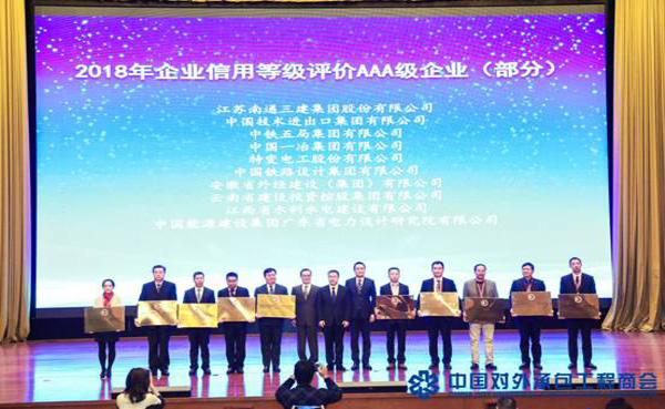 集團(tuán)資訊12月5日,中國對(duì)外承包工程商會(huì)第七屆理事會(huì)第四次全體會(huì)議在山東濟(jì)南隆重召開,來自全國各地的140多家理事單位的300多名代表參加會(huì)議。公司董事、海外公司執(zhí)行董事張周平出席會(huì)議。會(huì)議頒發(fā)了“2018年企業(yè)信用等級(jí)評(píng)價(jià)AAA級(jí)企業(yè)(部分)”牌匾,公司憑借良好的業(yè)績和口碑,再次榮獲中國對(duì)外承包工程企業(yè)信用評(píng)價(jià)AAA級(jí)信用企業(yè),并在現(xiàn)場受邀上臺(tái)接受授牌。