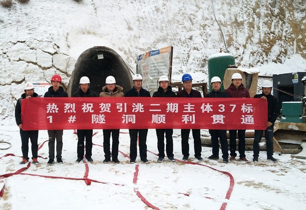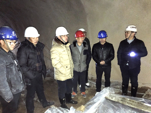 期間,徐洪良總經(jīng)理一行與業(yè)主、設(shè)計(jì)、試驗(yàn)檢測(cè)、監(jiān)理等單位的領(lǐng)導(dǎo)頂著鵝毛大雪,參加了37標(biāo)1#隧洞貫通儀式。