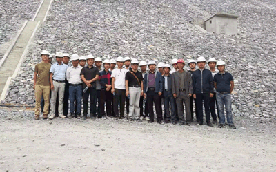 學(xué)習(xí)團(tuán)第一站是大麥西項目,項目負(fù)責(zé)人熊錦江帶領(lǐng)大家參觀了項目營地并對項目營地規(guī)劃建設(shè)、布置原則,水電解決方案等作了介紹。學(xué)員們隨后又參觀了油料庫、鋼筋加工、砂石料生產(chǎn)系統(tǒng)、混凝土制拌系統(tǒng)、上壩公路、導(dǎo)流涵管、溢洪道及主壩施工區(qū),項目負(fù)責(zé)人給學(xué)員們講解了現(xiàn)場各個作業(yè)面的安全預(yù)防把控、管理核心、質(zhì)量控制點、施工工藝程序等。學(xué)習(xí)期間,學(xué)員們和項目部在會議室召開了簡短的座談會,大家觀看PPT并進(jìn)行交流,通過溝通學(xué)員們進(jìn)一步了解和掌握了大麥西項目的難點要點。
