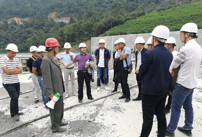 第二站,學(xué)習(xí)團(tuán)來到新屯水庫,跟隨著項目管理團(tuán)隊參觀了導(dǎo)流隧洞、上壩公路、主壩施工區(qū)、進(jìn)水塔、溢洪道、沉降觀測室、料場、復(fù)建公路等施工區(qū)域,隨后由項目副經(jīng)理向國華、測量負(fù)責(zé)人鄒國群及質(zhì)量負(fù)責(zé)人廖軼先分別就各自負(fù)責(zé)的工作內(nèi)容向?qū)W員們進(jìn)行了現(xiàn)場授課。通過現(xiàn)場學(xué)習(xí),學(xué)員們了解到該工程七大特點。