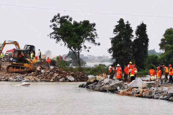公司技術(shù)組專家張周平、王俊華、曾朝文,彭燦華等領(lǐng)導(dǎo)在現(xiàn)場進(jìn)行技術(shù)指導(dǎo)。專家組研究發(fā)現(xiàn),當(dāng)日水流過大,石料來源缺失,難以立即對決口進(jìn)行合攏施工。需要待水流平穩(wěn),石料來源落實(shí)后,才可開始。