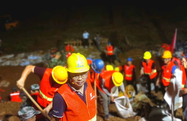 彭燦華是第一時(shí)間帶領(lǐng)抗洪搶險(xiǎn)隊(duì)員趕赴現(xiàn)場與洪水戰(zhàn)斗的先遣軍。他連夜指導(dǎo)施工人員開展搶險(xiǎn)工作,天黑路滑,他幾次摔倒在泥濘中,眼鏡上沾滿了泥點(diǎn),渾身早已被泥水覆蓋,即便這樣,他還是一邊了解汛情水情,一邊指揮搶險(xiǎn),一邊將一線汛情匯報(bào)給公司,一邊頂著傾盆大雨加入到搶險(xiǎn)的隊(duì)伍中,裝袋抬土,和搶險(xiǎn)施的隊(duì)伍們奮戰(zhàn)在一起。