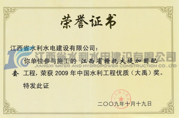 金杯銀杯不如老百姓的口碑。十年來,公司始終以項目管理為核心,以過程控制為主線,以質(zhì)量安全為重點(diǎn),以品牌形象為抓手,努力鑄造精品工程,滿足社會需要,實現(xiàn)社會價值。十年來,公司共有 12項QC成果,獲省部級獎項;有 7項工法獲得省部級工法,2項科研項目研究獲贛鄱水利科技一等獎;填補(bǔ)了歷史空白,有力的提升了企業(yè)的核心競爭力。十年來,公司承建的贛撫大堤加固配套工程和長江大堤防洪工程榮獲“大禹獎”,數(shù)十個項目榮獲全省水利優(yōu)良工程獎,5個項目被水利部評為文明工地,榮獲水利部首一批安全生產(chǎn)標(biāo)準(zhǔn)化施工企業(yè)和信用等級AAA企業(yè)。