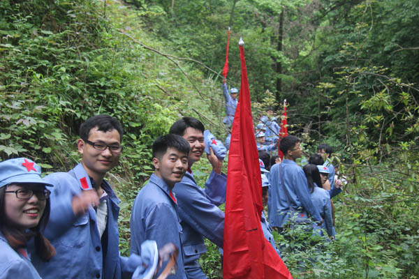 抵達(dá)井岡山后,全體人員立刻進(jìn)入三灣隊(duì)伍整編環(huán)節(jié),推薦隊(duì)長、政委和旗手,設(shè)計(jì)隊(duì)名、口號和LOGO。很快“飛龍隊(duì)”、“戰(zhàn)鷹隊(duì)” 等名字紛紛閃亮登場?!褒堈魅f里,所向披靡”、“ 群狼行千里,星火可燎原”等口號一次又一次迎來全場的陣陣歡呼。隨后進(jìn)行了“穿越叢林、突破封鎖線、匍匐前進(jìn)、火線救援”4個(gè)比賽項(xiàng)目,這些比賽項(xiàng)目,增強(qiáng)了大家的團(tuán)隊(duì)意識(shí),每名成員充分認(rèn)識(shí)到了團(tuán)結(jié)協(xié)作、友愛互助的重要性,使大家在比賽中受到啟發(fā)、受到鼓舞、更使大家得到了鍛煉,經(jīng)受了考驗(yàn)。